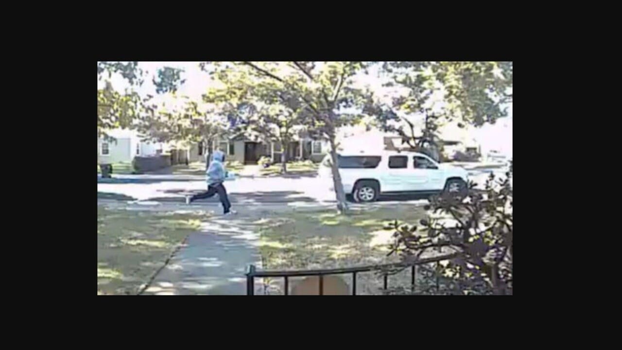 A photo released by USPIS shows a suspect fleeing one of the scenes toward a white GMC Yukon that is also sought.