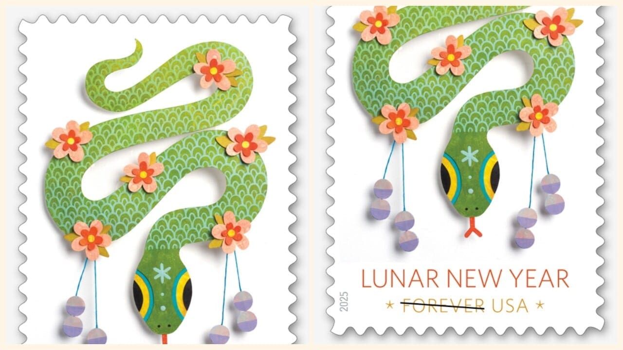 The Postal Service will release Year of the Snake, the sixth in the current Lunar New Year series of stamps, on Tuesday, Jan. 14.