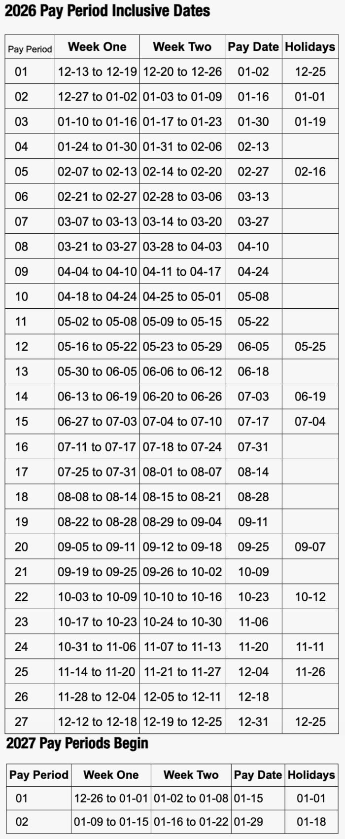 2027 Pay Periods Begin
