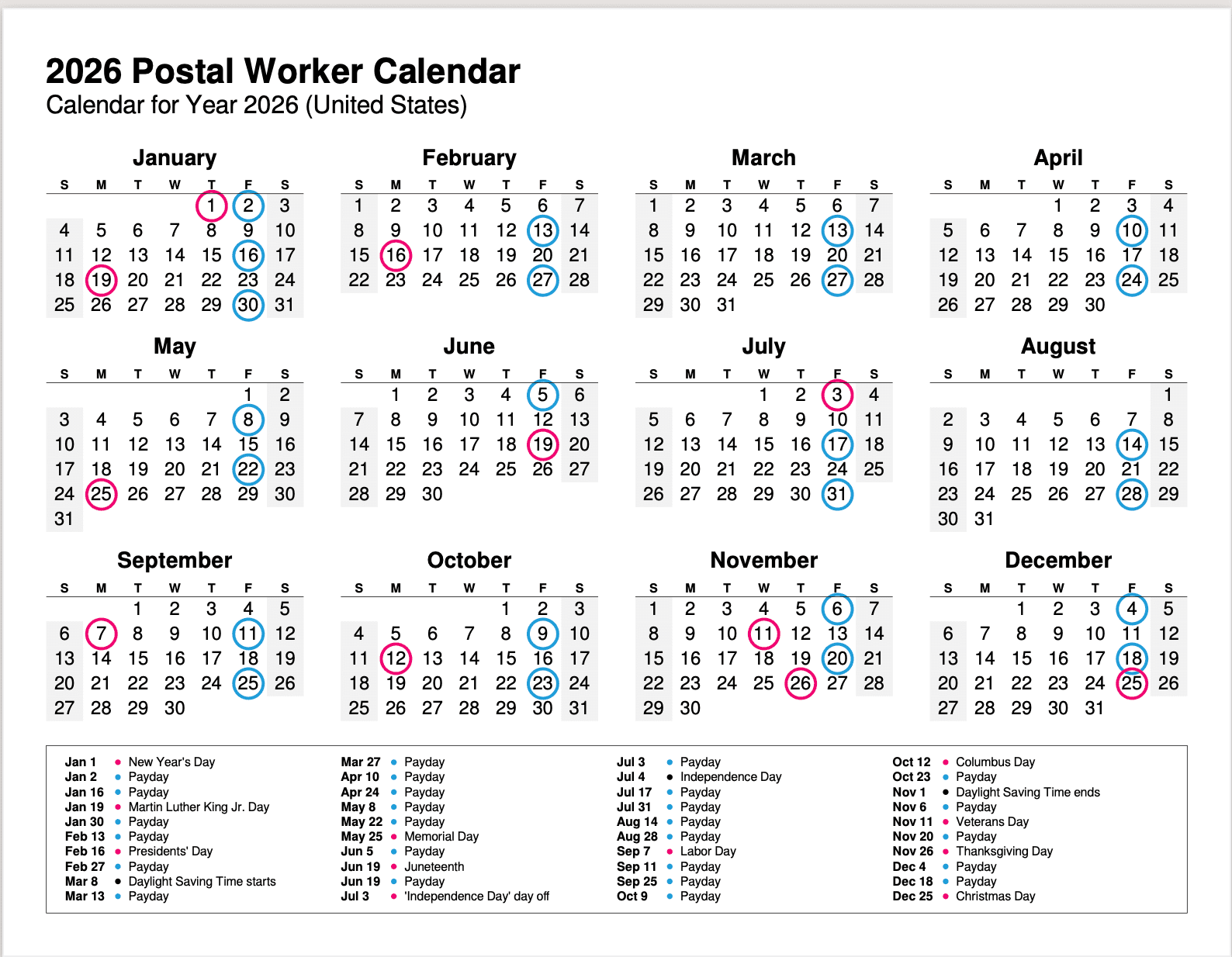 Just uploaded our new printable 2026 Postal Calendar. Just download one of them and print to keep by your case.