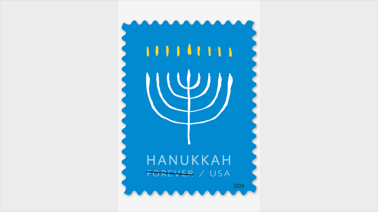 The stamp features an image of a hanukkiah, the nine-branch candelabra used during the holiday.