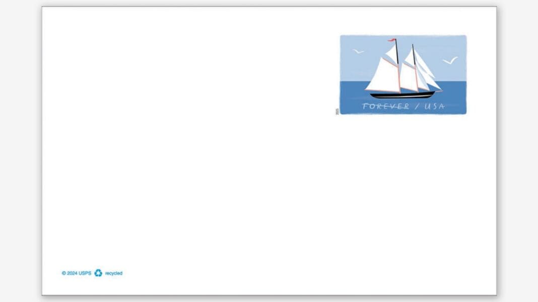 The Schooner stamped card will be available in packs of 10 at Post Offices and on usps.com.