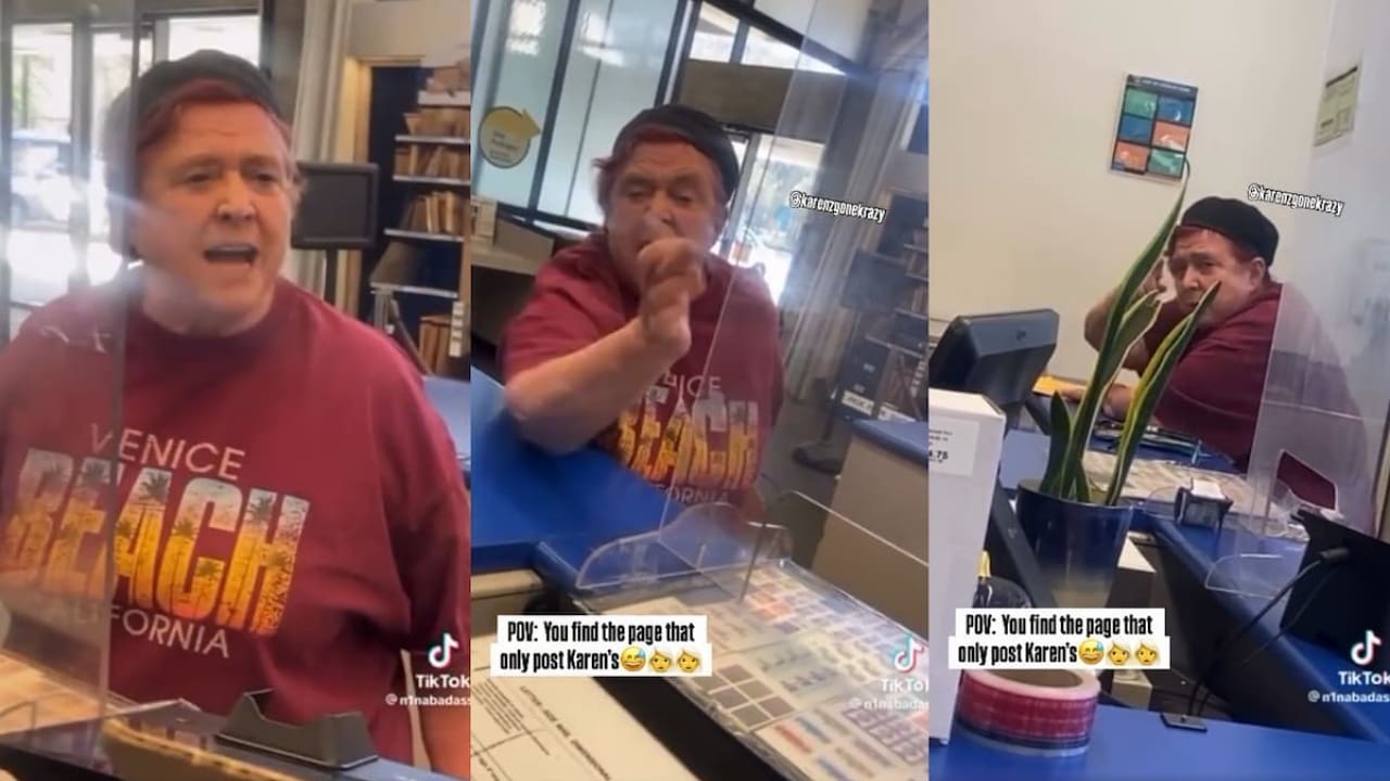 A California post office became the stage for an outrageous and unintentionally hilarious scene this week when an elderly woman, quickly branded a “Karen” by the internet, was filmed shrieking at staff over one of the smallest possible grievances: not knowing exactly where to place a return label on her envelope.