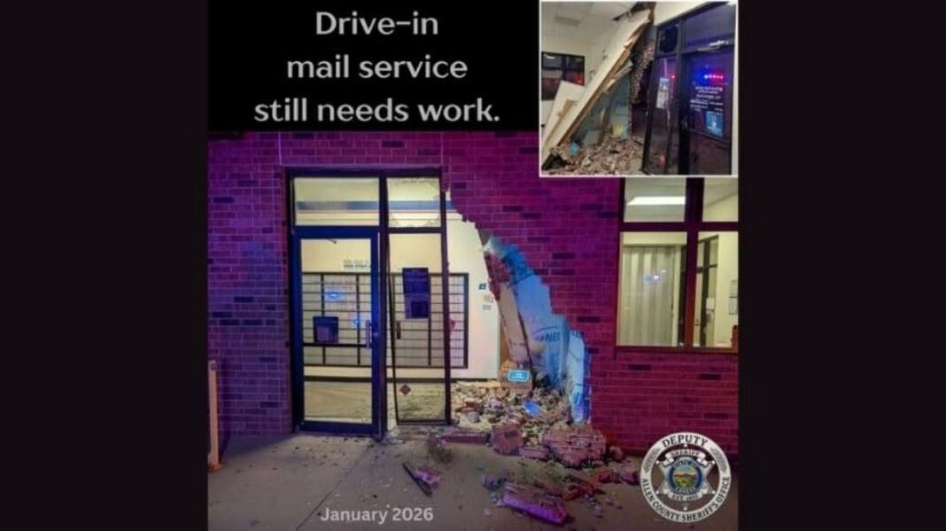 Car Crashes through Moran Post Office Saturday, No Injuries Reported - Ad Astra Radio | Your Hometown Radio Stations & Local News Source