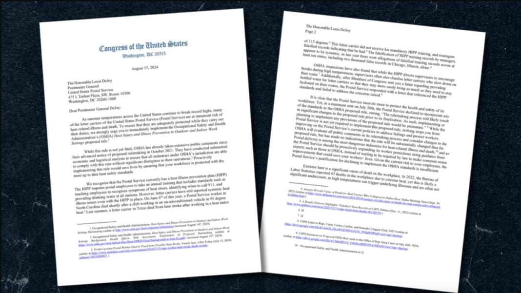 WASHINGTON – Today, Congressman Greg Casar (TX-35), U.S. House Committee on Oversight and Accountability Ranking Member Jamie Raskin (MD-08), Congresswoman Judy Chu (CA-28), and 74 other Members of Congress are calling on the United States Postal Service (USPS) to immediately implement the nation’s first-ever federal heat rule, recently proposed by the Occupational Safety and Health Administration (OSHA).