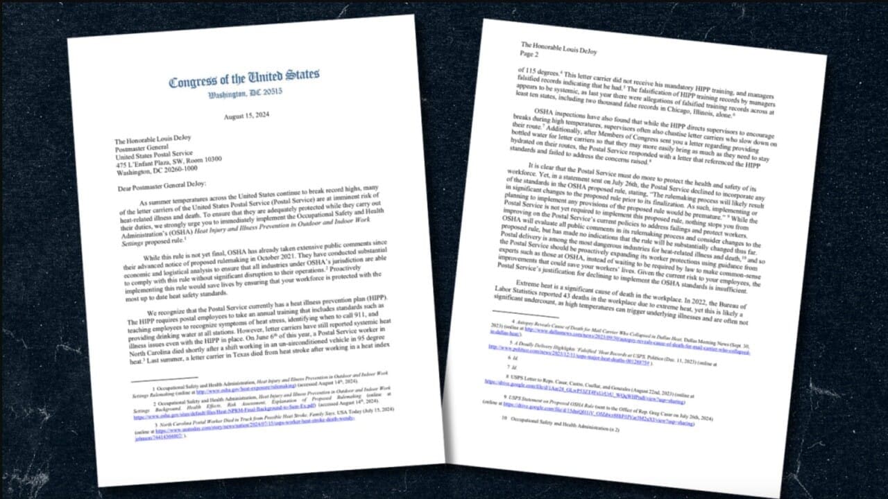 “Our letter carriers deliver the mail no matter the weather, many times without air conditioned trucks or access to water,” said Congressman Greg Casar (D-Texas). “I’m calling on Postmaster General DeJoy to implement heat protections now for these federal workers. Too many USPS workers have died on the job. DeJoy can do something about it.”