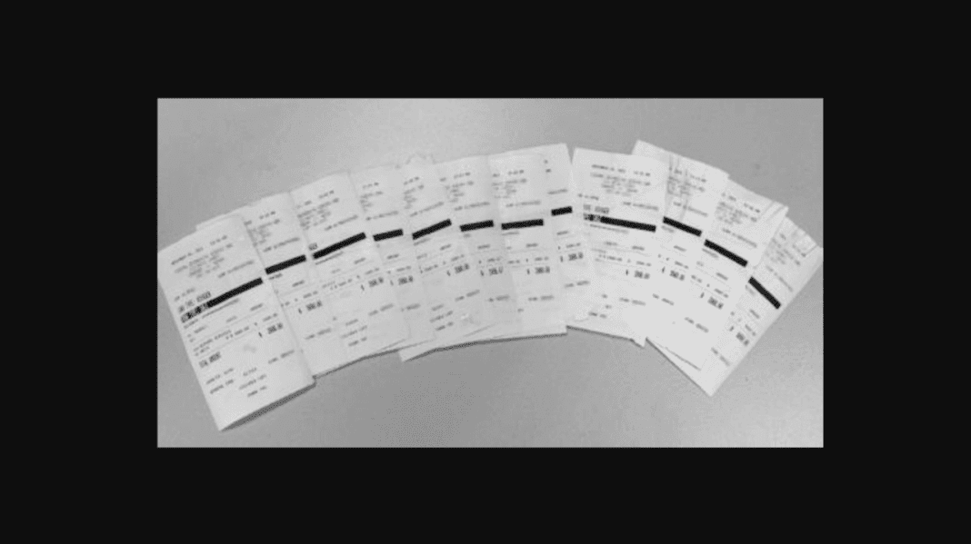 Photo – A week’s worth of USPS credit card receipts amounting to over $44,000 found during the investigation.