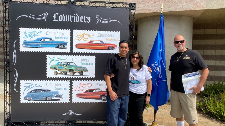 The Postal Service dedicated its Lowriders stamps on March 13 at a well-attended ceremony in San Diego. The Valenzuelas made the roughly five-hour drive from Litchfield Park, AZ.