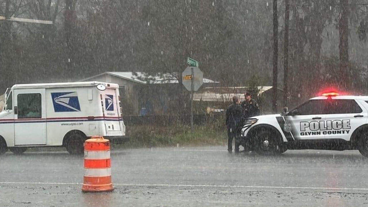 Glynn County Police was patrolling highway 17 when it spotted a mail truck running off the edge of the road and crossing the line on to oncoming traffic.
