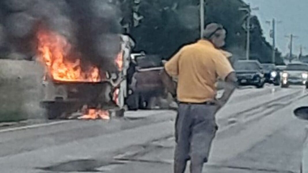 Mail truck on fire. South past Corteva.