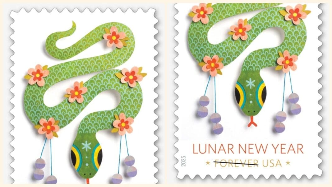 The Year of the Snake stamp will be available in panes of 20 at Post Offices and usps.com.