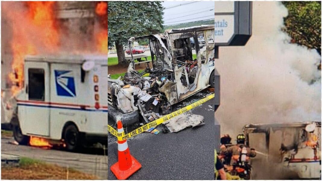 Mail Truck catches fire in Meredith, NH; truck and mail destroyed