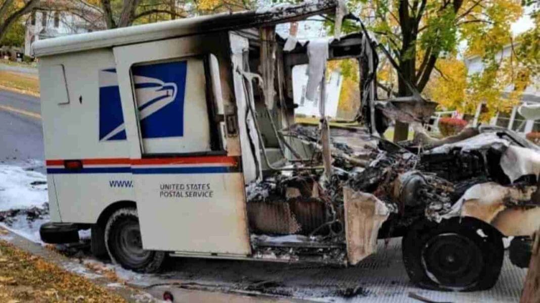 The postal employee operating the vehicle said they were able to get all the mail out prior to the fire spreading.