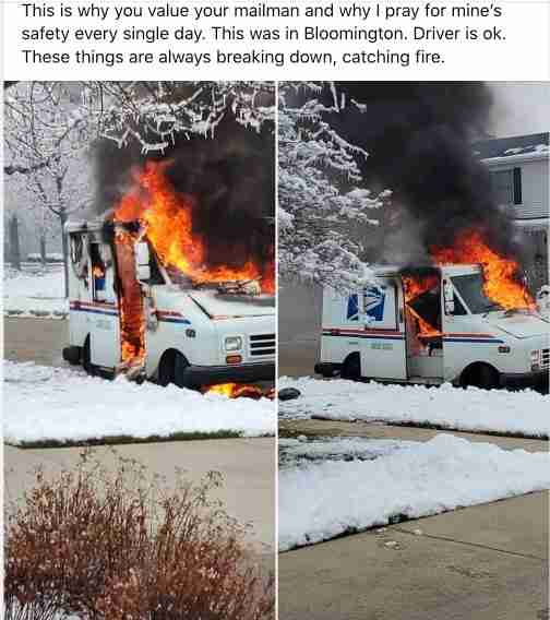 Mail truck fire – Bloomington, IL