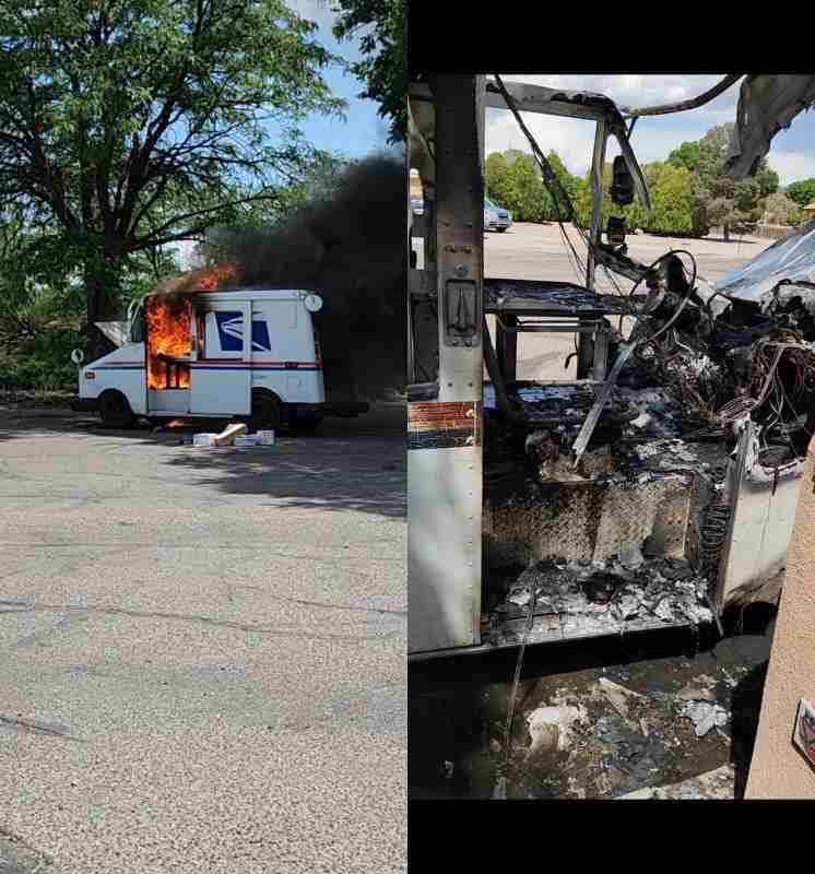 2023 Mail Truck Fires Less than 1 min.Read Mail truck fire – June 5th Rio Rancho NM June 5, 2023 Share FacebookTwitterCopy URL Mail truck fire – June 5th Rio Rancho NM TagsVEHICLE FIRE Share FacebookTwitterCopy URL Please leave this field emptySign up to receive our Daily Postal News blast Check your inbox or spam folder to confirm your subscription. Related Articles USPS mail truck catches fire in Warren County; no injuries reported 2025 Mail Truck Fires November 7, 2025 Tennessee Mail Truck Fire 2025 Mail Truck Fires November 5, 2025 Pennsylvania Postal Truck Fire Video November 3, 2025 Tell us what you think below! Subscribe Notify of new follow-up comments new replies to my comments Label {} [+] Name* Email* Label {} [+] Name* Email* 0 Comments Oldest Newest Most Voted Inline Feedbacks View all comments Hot this week Video Mark Dimondstein Retires as APWU President November 10, 2025 0 Mark Dimondstein, the outgoing president of the American Postal Workers Union (APWU) delivered an emotional farewell message to members on Monday Postal News This employee takes pride in supporting USPS sustainability goals November 5, 2025 0 My name is Brenda Adams and I’m a project manager for the Postal Service’s sustainability initiatives group in Washington, DC. Postal News Union representing postal workers calls for action as postal workers face increasing violence November 7, 2025 0 ROCHESTER, N.Y. — Postal workers in the region have been facing a surge of violent attacks, with mail, packages, and postal keys being stolen. Postal News Mail thefts, robberies, fraud and other postal crimes – 11/05/25 November 5, 2025 0 Postal crimes are almost a daily event. These are the ones we found today Postal News Mail thefts, robberies, fraud and other postal crimes – 11/11/25 November 11, 2025 0 Postal crimes are almost a daily event. These are the ones we found today Related Articles USPS mail truck catches fire in Warren County; no injuries reported 2025 Mail Truck Fires November 7, 2025 Tennessee Mail Truck Fire 2025 Mail Truck Fires November 5, 2025 Pennsylvania Postal Truck Fire Video November 3, 2025 North Port public safety departments respond to mail truck fire 2025 Mail Truck Fires October 21, 2025 USPS truck catches fire after crash in Florence 2025 Mail Truck Fires October 16, 2025 Popular Categories USPSPOSTAL CRIMESVEHICLE FIREOIGCONGRESSNALCAPWU Previous articleArkansas mail truck fireNext articleNALC: Bid counts renewed effective May 21, 2023