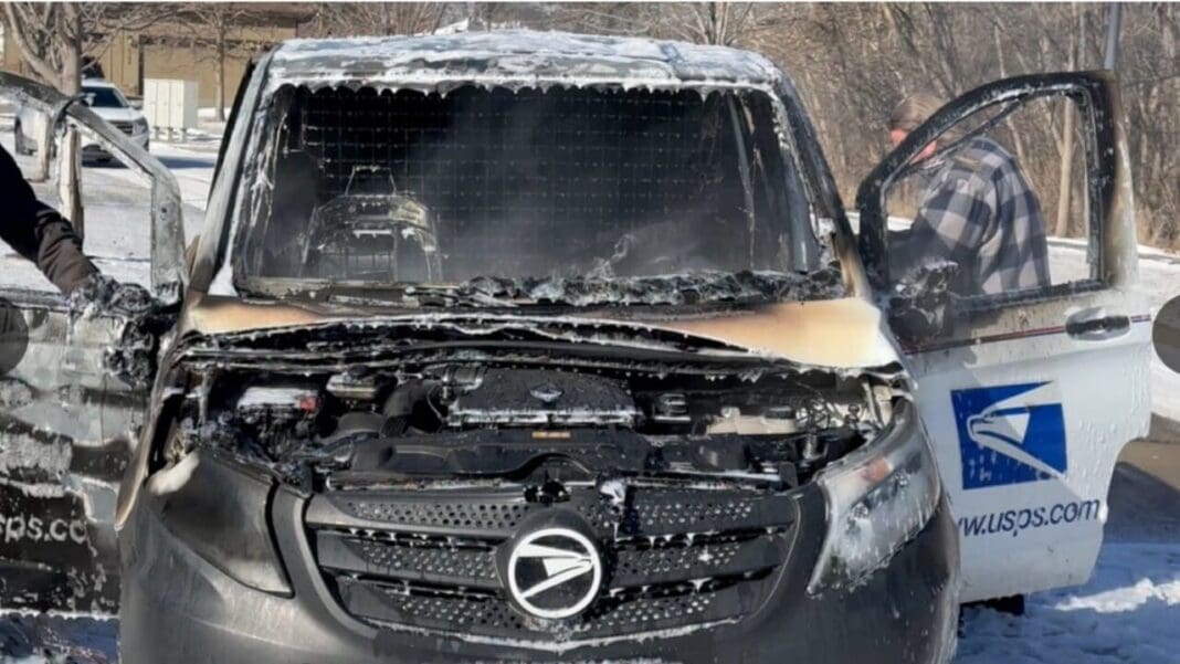 When a Channel 8 reporter arrived at the scene, firefighters were putting out a blaze inside a mail van.