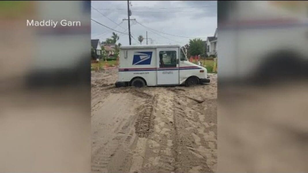 ‘Neither rain, nor snow, nor sleet, nor hail’ – but what about mud? Mail truck gets stuck in Gentilly