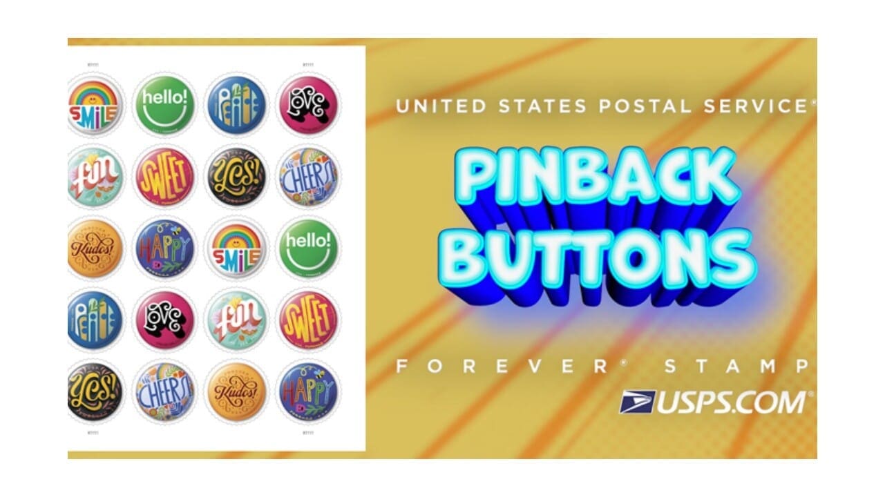 The Postal Service has released a video about its new Pinback Buttons stamps.