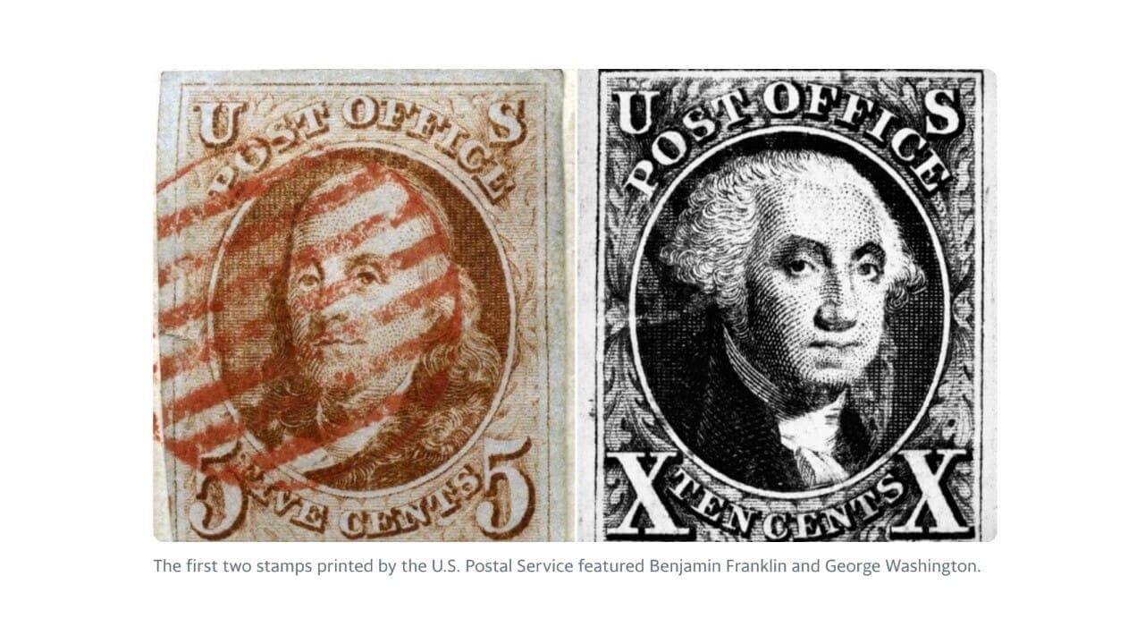 The United States Postal Service issued its first-ever postage stamps on this day in history, July 1, 1847.