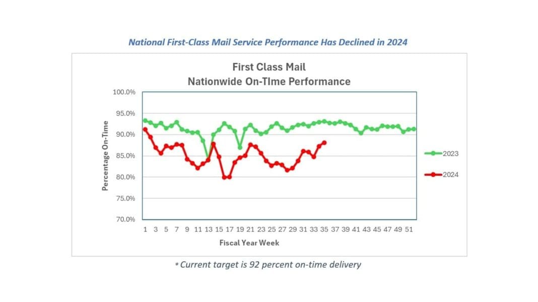 Commission Chairman Michael Kubayanda noted, “Emerging circumstances and information have reinforced the urgency and importance of understanding the impacts and regulatory implications of DFA before the Postal Service makes further changes that impact service.” National service performance in 2024 has been at historic lows, while locations such as Atlanta continue to suffer service problems, even after some improvement in recent weeks.