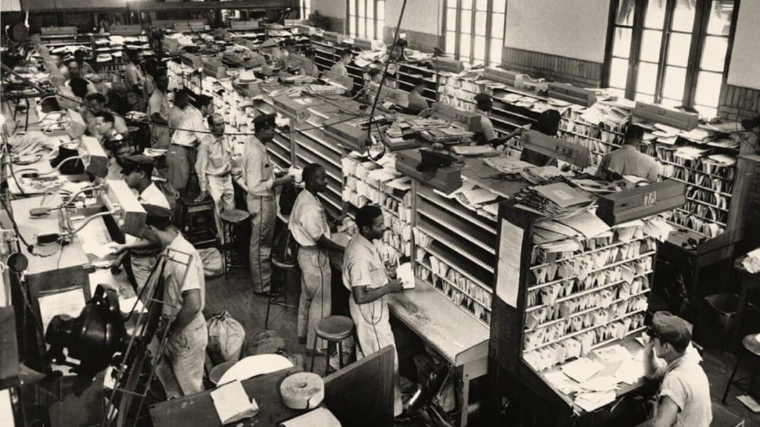 Photo: Black letter carriers work at the Mobile, AL post office in 1956