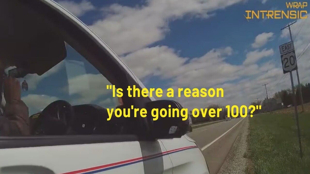 According to the traffic report from Sandusky County, the van had no plates and the driver appeared to be racing a Ford Mustang. In the body cam video, the deputy goes on to say, “Yeah. I mean, that Mustang took off. He caught my attention, and then you blew by him, and I was pacing you at like 105.”