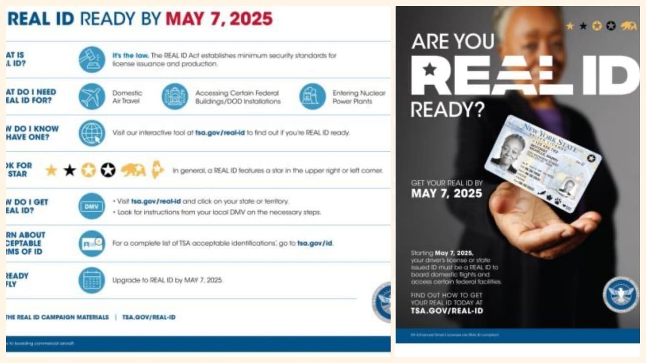 The federal government’s deadline for enforcing the REAL ID Act is May 7, 2025. On this date, U.S. travelers will need a REAL ID-compliant driver’s license or other TSA-approved form of identification to board commercial domestic flights. Examples of such approved forms of identification include but are not limited to: