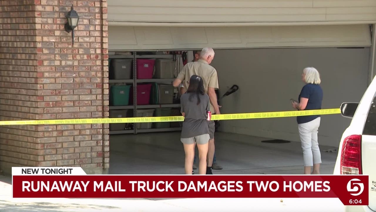 It was actually a mail truck that rolled into the front of their house, knocking down bricks and damaging the garage door.