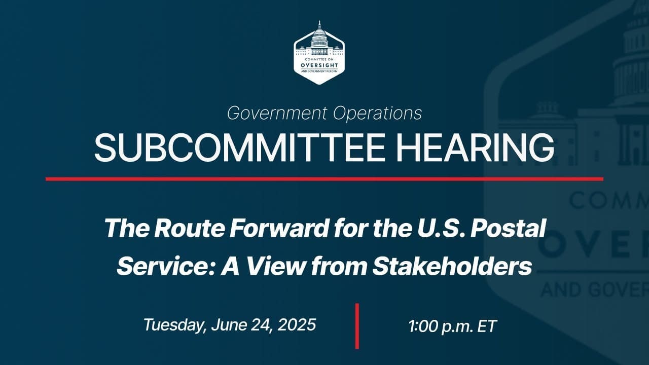 The House Oversight and Government Reform Committee holds a hearing titled “The Route Forward for the U.S. Postal Service: A View from Stakeholders”.