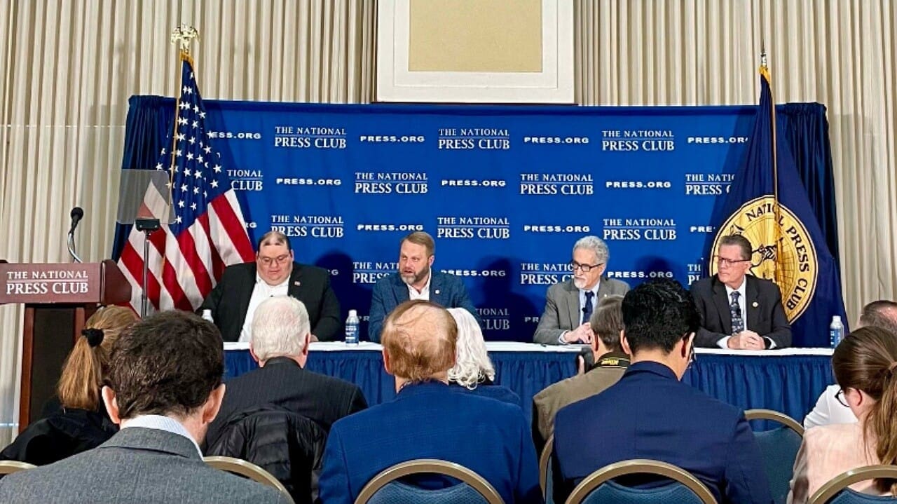 American Postal Workers Union President Mark Dimondstein, National Association of Letter Carriers President Brian Renfroe and National Association of Rural Letter Carriers President Donald Maston spoke at a National Press Club Headliners Newsmaker on March 25, 2025.