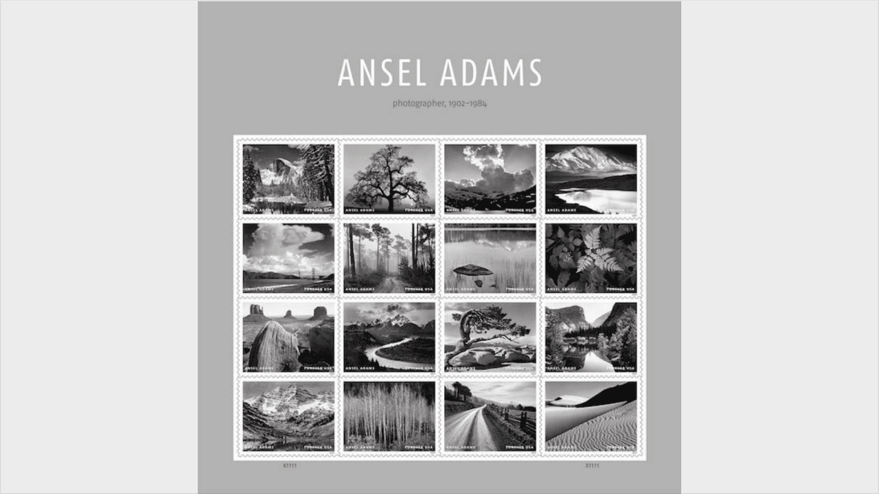 The Forever stamps celebrate 16 of the photographer’s iconic black-and-white images of some of the country’s most beautiful places.