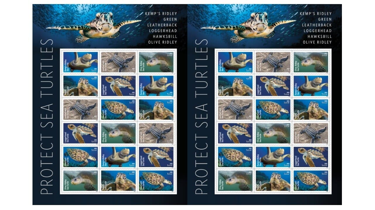 The U.S. Postal Service will celebrate the majesty of marine turtles with Protect Sea Turtles, new stamps aimed at raising awareness of the plight of six endangered species dependent on U.S. coastal waters.
