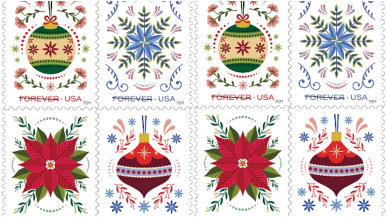 WASHINGTON, DC — The U.S. Postal Service today announced four new stamp designs for the 2024 holiday season. Holiday Joy, along with other stamps announced last year, make up only a partial list, with more to be revealed in the weeks and months ahead. All stamp designs are preliminary and subject to change.