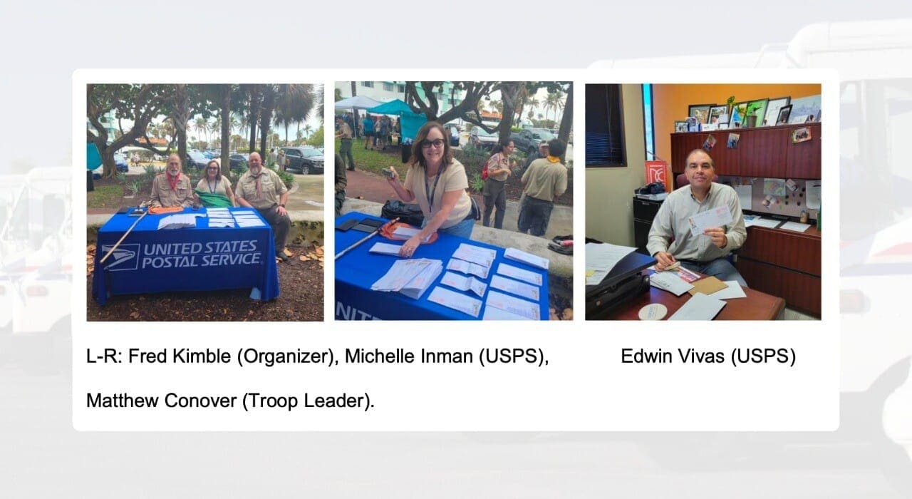 The Barefoot Mailman Historical hike took place on February 3-4, 2024. This 35-mile hike from Pompano Beach to Miami Beach has happened every year since 1964. The Boy Scouts of America South Florida gather in Pompano Beach and carry a mailbag to their destination in Miami Beach. This hike honors the historical legacy of the original 15 Barefoot Mailmen that traveled between 1885-1893 to deliver mail to those living in Miami. Hikers carry their gear for the 2-day hike and at the end march the last leg of hike with flags, while walking barefoot along the coastline. It provides numerous challenges and opportunities for Scouts, and Scouters, to test and show their teamwork, planning, self-sufficiency, and Scouting skills while preparing and participating on this hike.