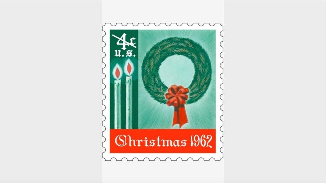 Designed by postal artist Jim Crawford, the 4-cent stamp featured a simple drawing of a wreath accompanied by two lighted tapers.