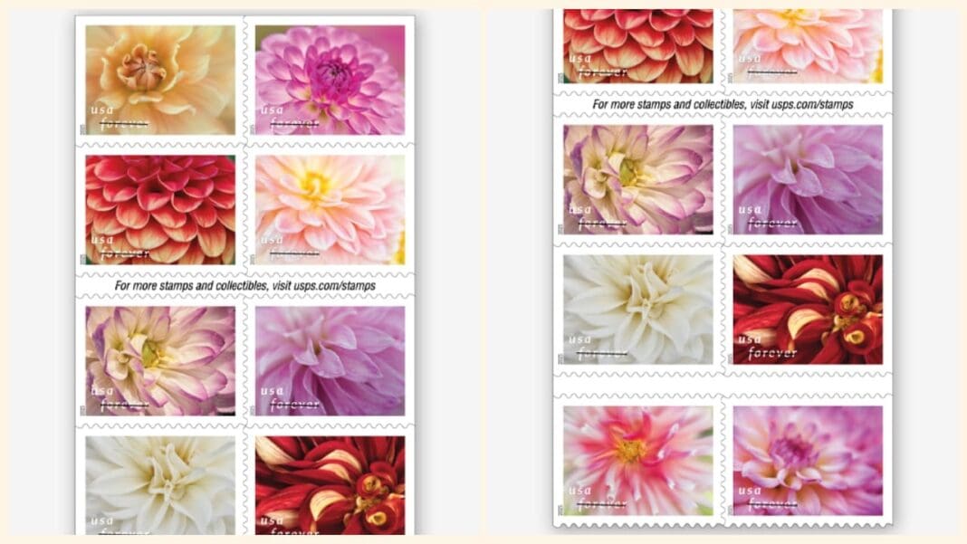 The Postal Service will release new stamps showcasing the lush beauty of dahlias in bloom on Saturday, April 26.