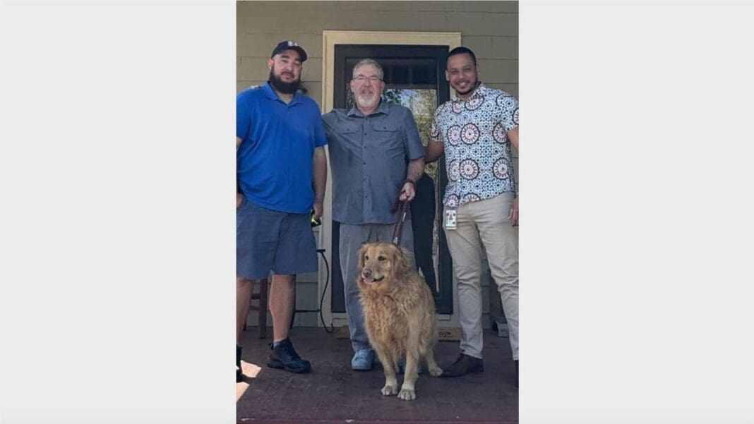 Photo: Springfield, MA, City Carrier Assistant Joseph Morales Caraballo, left, with homeowner Steve Cary and Juan Cabrera, the local acting station manager.