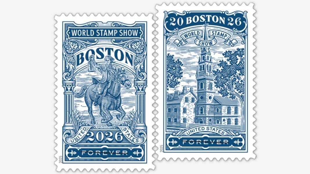 The stamps are being issued in anticipation of the nation’s 250th anniversary and the Boston 2026 World Expo, a major international stamp show.