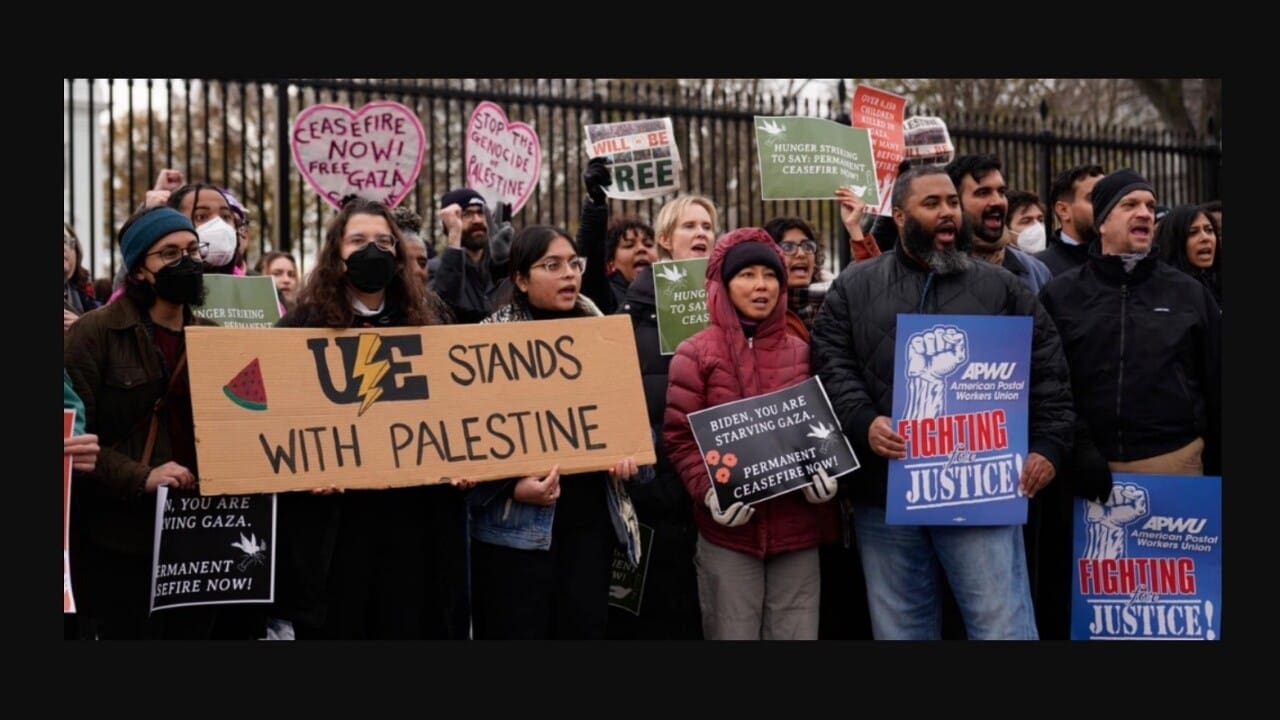 Last fall, Food and Commercial Workers (UFCW) Local 3000 and UE issued a call demanding a ceasefire soon after Israel began its assault on Gaza following the Hamas attack of October 7. That letter garnered the support of 248 unions, labor councils, and labor organizations representing 9 million members, including the UAW, APWU, AFA-CWA, IUPAT, NNU, and NEA among others.