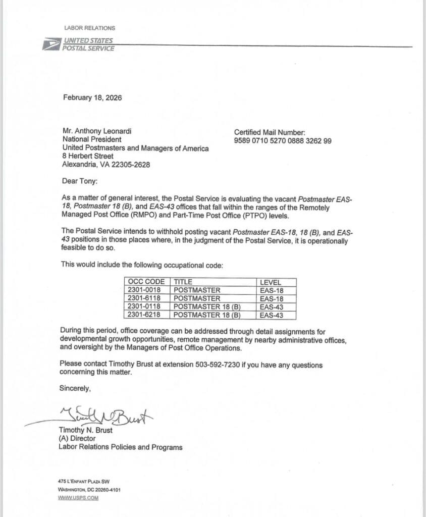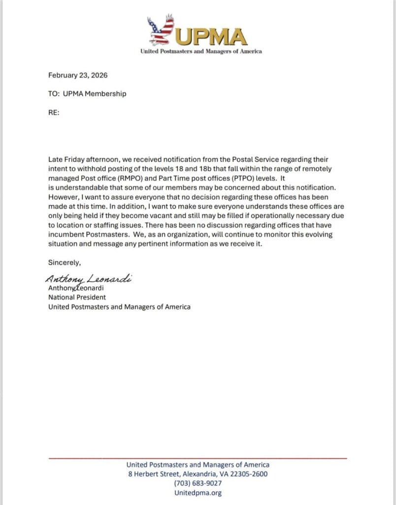 This is advanced notice that the USPS has announced that some 18 and 18B vacancies will enter withholding. National President Anthony Leonardis response is also included. We want to reiterate that there is absolutely no indication that this is in prep for any large scale action.