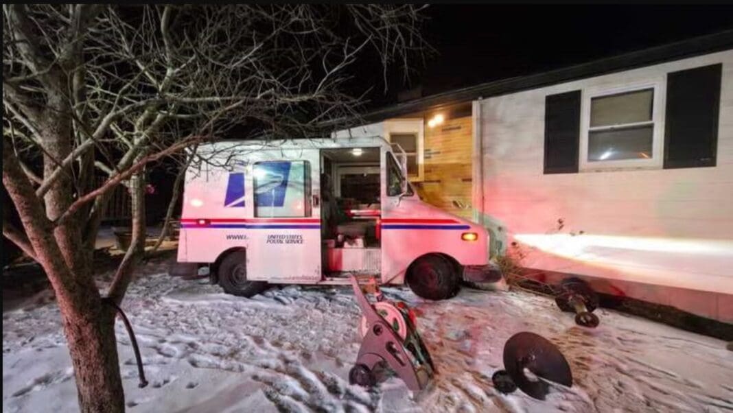 A USPS truck driver is injured after they crashed into a home in Sharon, Massachusetts, the town’s fire chief said.