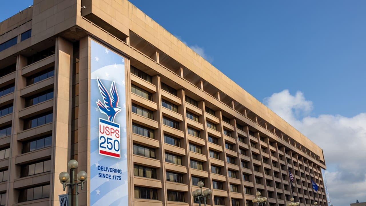 The Postal Service has added two giant banners to its Washington, DC, headquarters building to help mark the organization’s 250th anniversary.