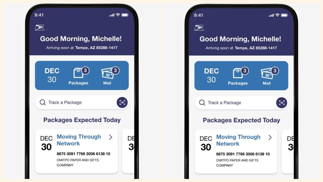The app’s home screen will include a summary of the customer’s expected mail and packages.