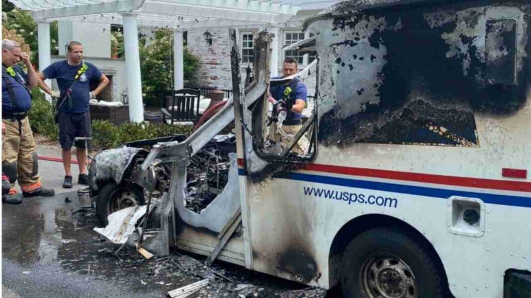 USPS Mail Delivery Truck Destroyed in Fire Thursday Afternoon in Maryland