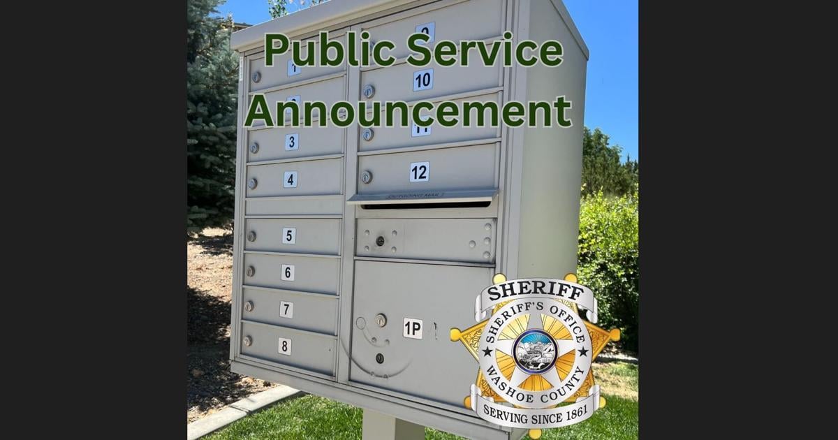 Washoe County Sheriff’s Office Warns of Cluster Mailbox Thefts, Offers Safety Tips