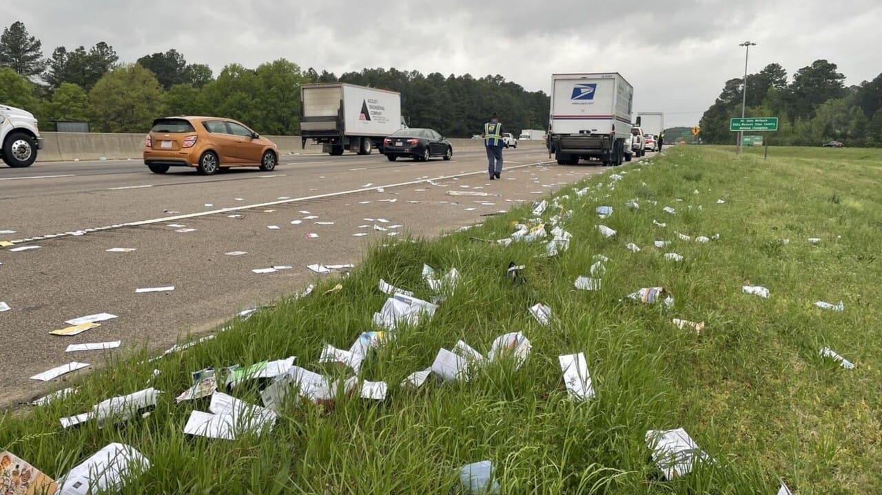 DURHAM, N.C. (WTVD) — Mail was scattered across I-40 Monday morning, causing traffic backup.