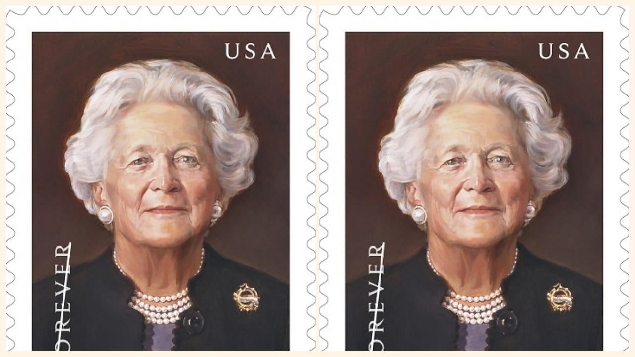WASHINGTON — At the White House today, the U.S. Postal Service revealed the artwork of a commemorative Forever stamp to celebrate the centennial year of former first lady Barbara Bush’s birth.