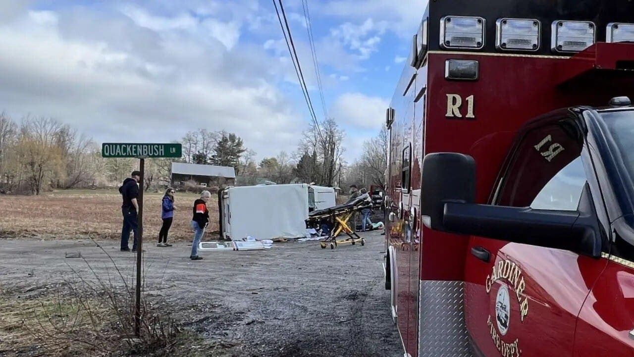 The crash was reported at 9:03 a.m. Saturday. Rescue workers were told a United States Postal Service vehicle had rolled over and the female driver had been partially ejected.