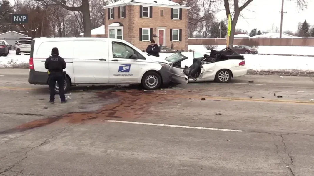 DES PLAINES – A woman has died after her vehicle was struck by a U.S. Postal Service truck Saturday morning in northwest suburban Des Plaines.